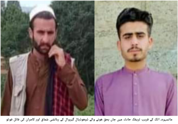 مانسہرہ(شیخ نزیر سے+ محمد نعیم سے) اٹک کے قریب گیروال ڈوھوڈیال کے رہائشی دو افراد ٹریفک حادثہ میں جاں بحق،شماق اورکامران اٹک کے قریب اچانک دوگاڑیوں کے تصادم کے دوران ہیوی مشنری کے نیچے دب کر جان کی بازی ہار گئے،تفصیلات کے مطابق باخبر ذرائع نے میڈیا کو بتایا کہ گزشتہ جمعہ اور ہفتہ کی درمیانی شب پشاور اٹک کے قریب مانسہرہ کے علاقہ ڈوھوڈیال گیروال سے تعلق رکھتے والے دو محنت کش شماق ولد محمد اور کامران ولد عبدالخالق اچانک دوگاڑیوں کے تصادم کے دوران ہیوی مشنری کے نیچے دب کر جان کی بازی ہارگئے،ٹریفک حادثہ میں جاں بحق ہونے والے دونوں افراد کی نماز جنازہ گزشتہ ہفتہ کے روز چھ بجے گیروال میں ادا کر دی گئی