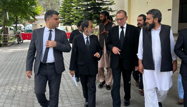 خواجگان(جنرل رپورٹر)مانسہرہ سابق وفاقی وزیر وسینٹر اعظم خان سواتی کی ایبٹ آباد ہائی کورٹ میں پیشی۔ اعظم خان سواتی ایبٹ آباد ہائی کورٹ میں 4 مقدمات کی سفری ضمانت لینے کے لیے پیش ہوئے۔ جو مقدمات لاہور میں درج ہوئے ہیں اور ہائی کورٹ نے 3 ہفتے کی ضمانت منظورکر لی اس موقع پر ان کے ساتھ وکلاء کی بڑی تعداد پیش ہوئی اعظم خان سواتی اس کے علاوہ ایف آئی اے کی عدالت میں بھی پیش ہوئے اس کے علاوہ عدت نکاح کیس میں بھی جوڈیشل کمپلیکس میں حاضر ہوئے۔