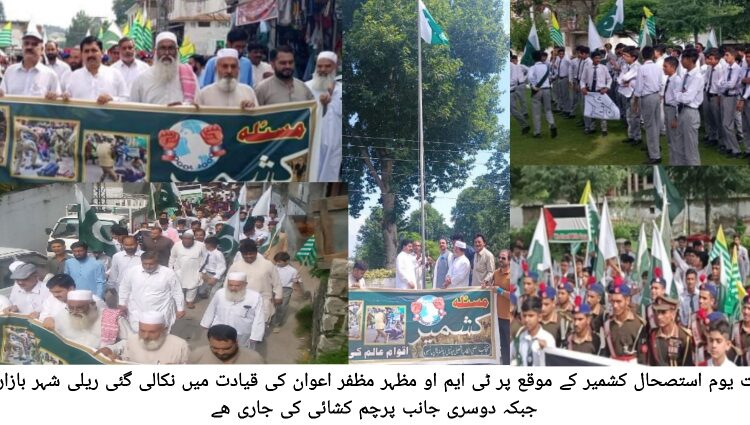 مانسہرہ(تحصیل جنرل رپورٹر+ڈسٹرکٹ نامہ نگار) 5 اگست یوم استصحال کشمیر کے موقع پر ٹی ایم او مانسہرہ مظہر مظفر اعوان کی قیادت میں ٹی ایم اے دفتر سے گورنمنٹ ہائر سکیندڑی سکول نمبر1 تک ریلی نکالی گئی،ریلی کے دوران شرکا کے ہاتھوں پلے کارڈ اٹھا رکھے تھے جن پر کشمیر بنے گا پاکستان، کشمیر کی آزادی تک جنگ رھے گی لکھا گیا تھا،جبکہ ریلی میں ضلعی انتظامیہ افسران سمیت صحافی برادری، علما کرام،تاجران کے علاوہ سکول پرنسپل اور بچوں نے بڑی تعداد میں شرکت کی اس موقع پر پرچم کشائی بھی کی گئی جبکہ ریلی سے خطاب کرتے ھوئے تحصیل میئر مانسہرہ شیخ محمد شفیع، ٹی ایم او مانسہرہ مظہر مظفر اعوان، ٹی او آر غلام مرتضے، پرنسپل گورننٹ ہائر سکینڈری سکول نمبر1بوائز نے خطاب کرتے ھوئے کہا کہ کشمیر پاکستان کی شہ رگ ھے،انہوں نے کہا کہ 75 سالوں سے کشمیر مسلمانوں پر بھارت کی جانب سے ظلم کی انتہا جاری ہے،جس کی ھم پرزور الفاظ میں مذمت کرتے ھیں مقررین کا کہنا تھا کہ جب تک کشمیر آزاد نہیں ھوتا ھم اس وقت تک چین سے نہیں بیٹھیں گئے، کشمیری مسلمانوں کا خون کھبی بھی رائیگاں نہیں جائے گا انشاء اللہ بہت جلد کشمیر آزاد ھوگا،دوران ریلی کشمیری نغمے بھی گائے گئے جبکہ آخر میں امت مسلمہ کی سلامتی اورکشمیر وفلسطین کی آزادی کیلئے دعا بھی کی گئی
