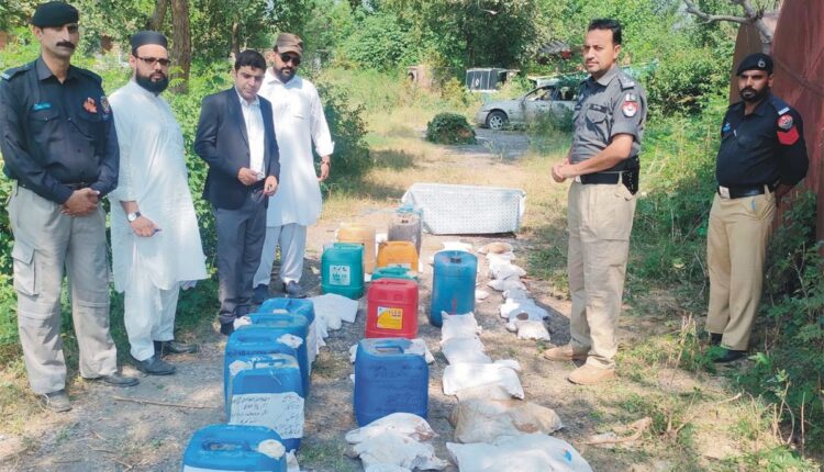 ہریپور(نمائندہ خصوصی)جوڈیشنل مجسٹریٹ سیکنڈ و سول جج شاہد خان نے ہریپو رکے مختلف تھانوں کی حدود میں پولیس کی جانب سے پکڑی گئی لاکھوں روپے مالیت کی اعلی کوالٹی کی چرس اپنی نگرانی میں تلف کروادی،اس موقع پر دونوں تھانوں کے ایس ایچ او بھی موجود تھے منشیات تلف ہونے تک علاقہ مجسٹریٹ موقع پر موجود رہے تفصیلات کے مطابق ڈسٹرکٹ سیشن جج شہناز خٹک کی ہدایت پر گزشتہ روز علاقہ مجسٹریٹ سول جج شہزاد خان نے ہریپور کے تھانہ سرائے صالح و صدرمیں تھانوں کے ایس ایچ او کی جانب سے پکڑی جانے والی منشیات چیک کی اور منشیات جس میں 12 کلو سے زاہد چرس،2 کلو ہیروئن،1000 کپی کے قریب شراب اور لاکھوں روپے مالیت کی اعلی کوالٹی کی آئس کو اپنی نگرانی میں تلف کروایا جہاں علاقہ مجسٹریٹ سول جج شہزاد خان منشیات کے تلف ہونے تک موقع پر موجود تھے