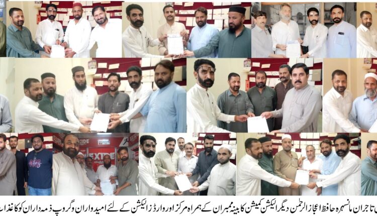 مانسہرہ(ڈسٹرکٹ نامہ نگار+تحصیل جنرل رپورٹر) انتخابات انجمن تاجران مانسہرہ،کاغزات نامزدگی وصولی کا پہلا مرحلہ اختتام پزیر،بڑے تاجر گروپوں اور آزاد پینلز کے امیدواروں نے کاغذات نامزدگی حاصل کر لیئے،کاغذات نامزدگی مرکزی چیئرمین حافظ اعجاز الرحمان اور وائس چیئرمین وارث خان نے وصول کئے،کاغذات نامزدگی جمع کرانے کا سلسلہ شروع ہو گا،جوڑ توڑ کا سلسلہ بھی جاری، تاجران الیکشن کی رونقیں جاری،شہر میں میلے کا سماں،تفصیلات کے مطابق 31 اکتوبر 2024 کو ہونے والے مرکزی انجمن تاجران مانسہرہ کے انتخابات کیلئے کاغذات نامزدگی حاصل کرنے کا مرحلہ اختتام پزیر ہو گیا گزشتہ بدھ کاغذات حاصل کرنے کا آخری دن تھا زرائع کے مطابق گزشتہ روز تقریباً درجن کے لگ بھگ مختلف تاجر گروپوں کے رہنماؤں نے اپنے اپنے گروپ کیلئے کاغذات نامزدگی حاصل کر لئے ہیں منگل کے روز علی احمد شاہ اور شیخ ندیم کے تاجران الخدمت گروپ نے(مرکز اور تمام پندرہ وارڈز)اور انصاف یوتھ تاجران گروپ نے بھی(مرکز اور تمام پندرہ وارڈز)کیلئے مرکزی الیکشن کمیشن تاجران سے کاغذات نامزدگی حاصل کئے جبکہ گزشتہ روز حاجی ہارون الرشید اور حاجی حنیف اعوان کے تاجر اتحاد گروپ نے(مرکز سمیت تمام وارڈز)شیخ کامران راجپوت اور بلال یوسفزئی کے کاروان تاجران گروپ نے مرکز سمیت تمام وارڈز)سعید خان تنولی کے ینگ ٹریڈرز گروپ نے(مرکز سمیت جملہ وارڈز) محمد شعیب خان اور شاہد مقبول کے حق پرست گروپ نے(مرکز سمیت تمام وارڈز) عنائت الرحمن یوسفزئی گروپ نے(مرکز)اویس امتیاز گروپ غالب حسین اور ادریس احمد گروپ نے(مرکز و شنکیاری روڈ) حاجی عثمان گروپ نے (مرکز و جملہ وارڈز) ناصر یوسف کے لالہ یوسف گروپ نے (مرکز و کشمیری بازار) شاہد نزیر و شہزاد سواتی شاہین تاجر گروپ نے بھی(مرکز و جملہ وارڈز) کیلئے مرکزی چیئرمین الیکشن کمیشن حافظ اعجاز الرحمن اور وائس چیئرمین وارث خان سے کاغذات نامزدگی حاصل کر لیے ہیں جبکہ اس کے علاہ درجنوں دیگر امیدواروں نے بھی آزاد حثیت سے مختلف وارڈز سے الیکشن میں حصہ لینے کیلئے کاغذات نامزدگی حاصل کئے ہیں۔