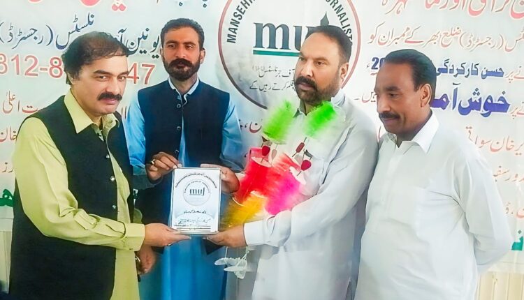 مانسہرہ(نیوزرپورٹر)مانسہرہ یونین جرنلسٹس(رجسٹرڈ)مانسہرہ کے چالیس سال مکمل ہونے پر حسن کارگردگی ایوارڈز تقسیم فیز ٹو کی تقریب کاانعقاد،گزشتہ روز مانسہرہ پریس کلب ہال میں ہوا جس کے مہمان خصوصی چیئرمین ملک ممتاز تنولی ضلعی صدر پاکستان پیپلز پارٹی مانسہرہ تھے جبکہ ایس پی ہیڈکوارٹر مانسہرہ ارشد خان اور صدر ڈسٹرکٹ بار کلب مانسہرہ حافظ نسیم نے پروگرام میں خصوصی شرکت کی تقریب کے آغاز میں صدر مانسہرہ یونین آف جرنلسٹس اشتیاق خان تنولی نے MUJ(رجسٹرڈ) کے اغراض و مقاصد بیان کئے اوریونین کابینہ ودیگر ممبران کی 40 سالہ کارگردگی پر روشنی ڈالی جبکہ کے پی کے کی صوبائی حکومت سے ایم یو جے مانسہرہ کے 2017 سے روکے ہوئے فنڈز ادائیگی کامطالبہ بھی کیاگیاتقریب کے دوران پچھلے ادوار میں بے شمارمشکلات اورسخت دشواریوں کے باوجود آئے روزشاندارو حسن کارگردگی کامظاہرہ کرنے والی صحافی برادری کے ممبران ووکلاء حضرات اورسرکاری وغیر سرکاری افسران وسول اہلکاران کے علاوہ سیاسی و سماجی شخصیات کو بھی حسن کارگردگی ایوارڈز سے نوازا گیاجن میں چیئرمین ملک ممتاز تنولی ضلعی صدر پی پی پی مانسہرہ ایس پی ہیڈ کوارٹر مانسہرہ محمد ارشد خان صدر ڈسٹرکٹ بار مانسہرہ حافظ محمد نسیم خان ایڈووکیٹ اورملک مظفر دین شہزاد خان جہانگیری ایڈووکیٹ ملک بشیر راجپوت و محمد رفیق ڈینٹل مانسہرہ بھی شامل ہیں جبکہ حسن کارگردگی ایوارڈ حاصل کرنے والے سینئر صحافی حضرات میں اشتیاق خان تنولی صدر (MUJ) رجسٹرڈ مانسہرہ تنویر خان سواتی جنرل سیکرٹری. شفیق الرحمن اعوان شیخ غفور حسین شوکت تنولی قاضی محمد بلال عبدالغفار مہمند سید زاہد حسین شاہ اخلاق احمد خان سرفراز یوسفزئی ارشد خان سواتی میاں محمد حسین احمد شہزاد اکرام قریشی غلام نبی آزاد اخوانزادہ حمزہ خان ریاست خان جہانگیری ناصر خان عاطف اعوان سیفی خان قاری عبد القدیر سید منور شاہ محمد نواز عبد المالک ناگی باوا علی زمان مغل چن پیر شاہ حاجی ادریس اورمنظور سرحدی سمیت کئی دیگر بھی شامل ہیں جبکہ مہمان خصوصی ملک ممتاز تنولی اوراشتیاق خان تنولی نے ایوارڈز تقسیم کیئے ملک ممتاز تنولی نے اپنی طرف سے ایم یو جے کیلئے تیس ہزار روپے نقد دینے کابھی اعلان کیا