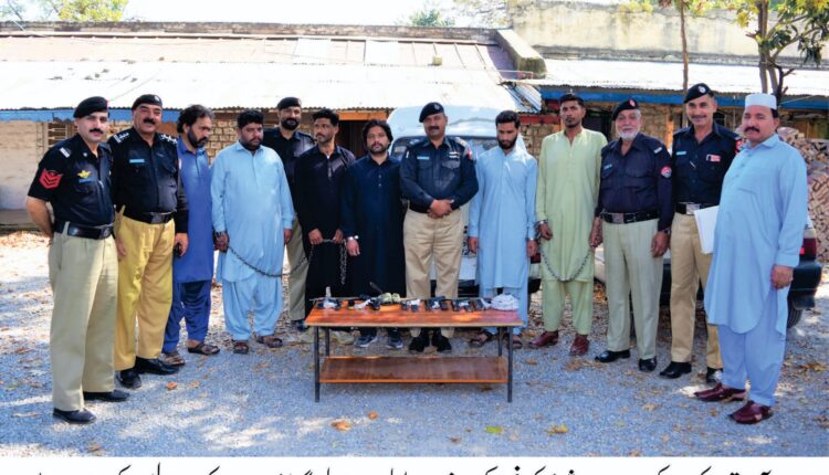 ایبٹ آباد(ڈسٹرکٹ رپورٹر)عمر طفیل PSP ڈسٹرکٹ پولیس آفیسر ایبٹ آباد کی قیادت میں ایبٹ آباد پولیس کاجرائم پیشہ عناصر کے خلاف بھرپور کریک ڈاؤن جاری کینٹ پولیس کی کاروائی 06 اغواء کار بھاری اسلحہ ایمونیشن،گاڑی سمیت گرفتار،مغوی برآمد،ایس ایچ اوکینٹ کیڈٹ عبدالغفور قریشی نے گزشتہ روزکوتوالی چوک نزد کمپنی باغ سے شیروان میں مسجد کے تنازعہ پر 62سالہ شخص کو بزریعہ گاڑی کیری ڈبہ اغوا کرنے والے 06 ملزمان شاہد،عبداللہ،عبدالواحد،شبیر، بابر، حسنین علی کو 06 عدد پستول اوربھاری مقدار میں ایمونیشن اورگاڑی سمیت گرفتارکرکے ملزمان کے خلاف زیر دفعات 341/365/506ii/342/148/149/109 پی پی سی 15AA کے تحت مقدمہ درج رجسٹرڈ کر کے مزید تفتیش کاآغازکردیا۔
