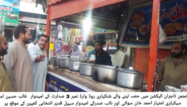 مانسہرہ(ڈسٹرکٹ نامہ نگار+تحصیل جنرل رپورٹر) انجمن تاجران الیکشن سرگرمیاں،تاجر برادری سے انتخابات2024 میں حصہ لینے والے مرکز سمیت وارڈز کے امیدواران کے رابطے،کمپین گہما گہمی عروج پر مرکز کے تینوں بڑے گروپوں کے امیدواران کی سر توڑ کوشش،کامیابی کیلئے تاجربرادری کی خدمت کے دعوے، 16 وارڈوں کے امیدواروں کی جانب سے مشاورتی اجلاس و مختلف مقامات پر میٹنگز،تفصیلات کے مطابق انجمن تاجران انتخابات 2024 کی الیکشن سرگرمیاں زور شور سے جاری ھیں تاجران الیکشن میں مرکز کیلئے تین گروپوں میں شامل تاجر خدمت گروپ کے کامران ریاض اعوان جو کہ مرکزی صدارت کے امیدوار ھیں مرکزی جنرل سیکرٹری کیلئے سعید خان تنولی نائب صدارت کے امیدوار حاجی بشیر اعوان جبکہ تاجر حق پرست گروپ اور کاروان تاجران گرپ کے امیدواروں کی جانب سے اپنی اپنی الیکشن مہم جاری ھے اور دوران الیکشن کمپین مرکز کے امیدواران کی جانب سے تاجر برادری کی خدمت اور انکے حقوق کی بازیابی کے دعوے بھی کئے جارھے ھیں جبکہ دوسری جانب سے 16 وارڈوں میں الیکشن تاجران میں حصہ لینے والے امیدواروں نے بھی نہ صرف مشاروتی اجلاس بلکہ مختلف مقامات پر میٹیگز کا سلسلہ بھی شروع کردیا ھے جس کے بعد انجمن تاجران مانسہرہ انتخابات میں تاجربرادری کی طرف سے بھی زبردست دلچسپی پائی جاری ھے،،،