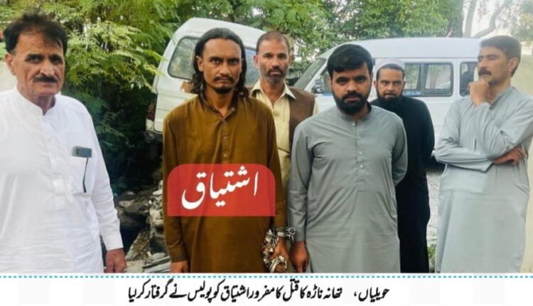 حویلیاں (نمائندہ شمال)ضلعی پولیس سربراہ ایبٹ آباد عمر طفیل کے احکامات اورایس پی اشتیاق حویلیاں ڈویژن ڈی ایس پی سرکل حویلیاں کی ہدایت پر عبدالوحیدقریشی ایس ایچ او تھانہ ناڑہ نے بحوالہ مقدمہ علت 181 مورخہ 26/06/2020 جرم 17 ضمن 4 حرابہ 460/324/15AAKPK تھانہ ناڑہ نے انتہائی خطرناک اور دوہرے قتل میں نامزد ملزم محمد اشتیاق ولد محمد مشتاق قوم تنولی سکنہ چینتری ہریپورکوگرفتارکر کے بند سلاسل کیاتفصیلات کے مطابق سردار دلشاد زمان کے والد(محروم)حاجی سردارمحمد زمان کاقاتل اشتیاق عرف شاکاکوپولیس نے گرفتار کرلیاایس ایچ او تھانہ ناڑہ عبدالوحیداورانسپکٹر معروف خان اوران کی ٹیم کی کامیاب کارروائی بدنام زمانہ ڈکیت قاتل کارلفٹر اورمفروراشتیاق عرف شاکاکوگرفتارکیاہے جس پراہلیان علاقہ نے ایس ایچ او اورانسپکٹر معروف خان اوران کی پوری ٹیم کو کامیابی کارروائی پر خراج تحسین پیش کرتے ہیں اور اپنی عدلیہ سے بھی امید کرتے ہیں سفاک قاتل کومنقطعی انجام تک پہنچائیں گے اس نے ناحق قتل کر کے پورا خاندان اجاڑا ہیں اور بھی درجنوں کیس میں ملوث ہیں ایسے لوگوں معاشرے کے لئے ناسور ہوتے ہیں ان کا جلد از جلد انجام تک پہنچا لازمی ہے