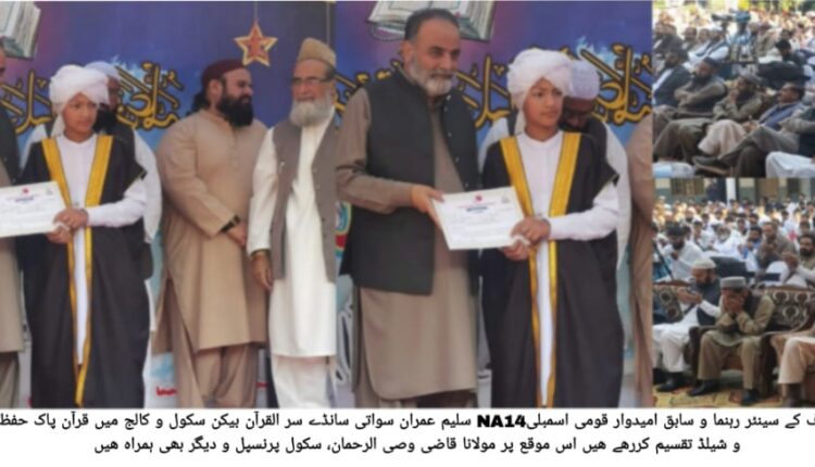 مانسہرہ (اشتیاق بخآری+عاشق حسین تبسم) القرآن بیکن سکول اینڈ کالج سانڈے سر مانسہرہ سالانہ پروگرام بعنوان صحیفہ رشدو ہدایت کا انعقاد 25 حفاظ کرام طلبا کی دستار بندی ہزاروں افراد کی شرکت۔صحیفہ رشدوہدایت کانفرنس میں طلبا اساتذہ علما و مشائخ ڈاکٹرز پروفیسرزحفاظ کرام قرا حضرات کے علاوہ مہمانان خصوصی قاصی وصی الرحمان،اسسٹنٹ کمشنر اشتیاق سلطان خٹک،چیف ایگزیکٹو القرآن بیکن سکولز اینڈ کالجز سسٹم سانڈے سر مانسہرہ محمد فاروق،مولانا مفتی ضیا الحق،پرنسپل(ر)سکاؤٹس کیڈٹ کالج بٹراسی پروفیسر توقیر السلام،تحریک انصاف کے مرکزی رہنماسابق امیدوارقومی اسمبلی سلیم عمران کے علاوہ ممبران بلدیات سیاسی ومذہبی شخصیات کاروباری شخصیات زیر تعلیم طلباوطالبات کے والدین نے شرکت کی اس موقع پر پرنسپل القرآن بیکن سکولز اینڈ کالجز سانڈے سر مانسہرہ ڈاکٹر محمد جاوید نے استقبالیہ خطبہ میں آنے والے معززین کو خوش آمدید کہااورادارہ القرآن بیکن سکولز اینڈ کالجز سانڈے سرمانسہرہ کی علمی ادبی دینی خدمات پر مختصر روشنی ڈالی اورکہا جدید سائنسی علوم کے ساتھ ساتھ دینی تعلیم پر خصوصی توجہ دی جارہی ہیں ہماراملک اسلام کے نام پر آذاد ہوا یہاں دینی شعور وآگہی بھی اتنی ہی ضروری ہے جتناسائنسی علوم ضروری ہیں اسلام اورقرآن مجید کی تعلیم ہی ہمیں ترقی کی راہوں پرگامزن کرسکتی ہے الحمد اللہ آج 25 حفاظ کرام طلبا کی دستار بندی ہو گی یہ پورے ہزارہ ڈویژن ہی نہیں بلکہ صوبہ خیبر پختونخوا میں ایک منفرد اعزازہمارے تعلیمی ادارے کے نام ہوگیاسالانہ کانفرنس صحیفہ رشدو ہدایت میں شریک مقررین نے خطاب کرتے ہوئے القرآن بیکن سکول سانڈے سر مانسہرہ کی تعلیمی خدمات کو شاندار الفاظ میں خراج تحسین پیش کیااورکہاکہ ادارہ ہذا ہزارہ ڈویژن خیبر پختونخوا کاایک واحد ایسا ادارہ ہے جو تیس سال سے سیکنڈری وانٹرمیڈیٹ امتحانات میں پوزیشن کے اعزاز کے دفاع میں کامیاب ہے اوریہاں عصر حاضر کے تقاضوں کے ہم آہنگ تعلیمی نظام موجود ہے اورسائنسی عصری و دینی تعلیمات اورسپورٹس سمیت تمام شعبوں میں بھرپور محنت ریکارڈ پر ہے ادارہ ہذا سے فارغ التحصیل طلبا وطالبات ملک وبیرون ملک شعبہ ہائے زندگی میں نمایاں مقام پر فائز رہتے ہوئے ملک وقوم اور والدین کانام روشن کر رہے ہیں پروگرام کے دوران علما و مشائخ مہمانان گرامی کے ہاتھوں حفاظ کرام کردستار بندی کی گئی آخرمیں تمام مہمانوں شرکاء کو پرتکلف لنچ دیاگیا