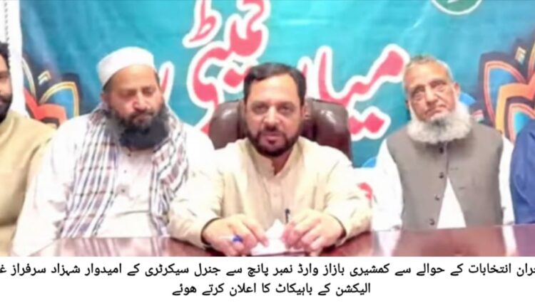 مانسہرہ(تحصیل جنرل رپورٹر)انجمن تاجران انتخابات الیکشن کمشنر عدم اعتماد وارڈ نمبر پانچ سے جنرل سیکرٹری کے امیدوار نے الیکشن تاجران کابائیکاٹ کردیا،غیر قانونی اور غیر آہنی الیکشن کو نہیں مانتے، الیکشن کمشن چیئرمیں حافظ اعجاز کو نہیں مانتے، نئے الیکشن شیڈول کااعلان کیاجائے ان خیالات کا اظہارکشمیری بازار وارڈ بر پانچ سے جنرل سیکرٹری کے امیدوار سرفراز شہزاد نے کیا ان کامزید کہناتھا کہ تاجران الیکشن غیر قانونی اورغیر آئینی ہیں چئیرمین حافظ اعجازالرحمان کے اقدامات جانبدارانہ ہیں ان کی موجودگی میں الیکشن کابائیکاٹ کرتے ہیں اور ان کی موجودگی میں نہ ہی کوئی نیاالیکشن شیڈول مانتے ہیں ان کی موجودگی میں صاف وشفاف الیکشن ممکن ہی نہیں ہیں جلد ہی انجمن تاجران کے تمام گروپوں سے مل کرغیر متنازعہ الیکشن کمشن اورکابینہ بنائیں گے