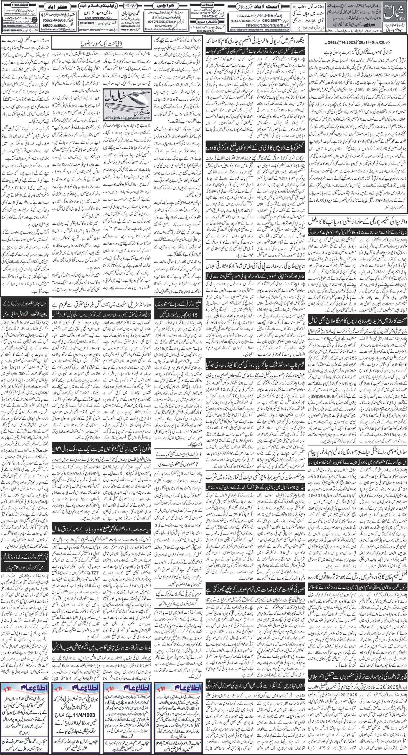 Homeآج کا اخبار26-05-2025آج کا اخبار 26-05-2025 By Staff Reporter On مئی 26, 2025 0 Share abbottabad newsdailyshamaldailyshamalabbottabadFuture of Newsgovernment newsimran khan newsimran newslatest news 0 Share FacebookTwitterGoogle+ReddItWhatsAppPinterestEmail
