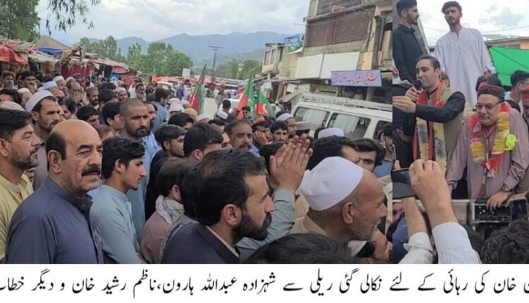 سرن ( جنرل رپورٹر) رہا کرو رہا کرو عمران خان کو رہا کرو۔ ضلع مانسہرہ میں عمران خان کی رہائی کیلئے شنکیاری کے مقام کو چنا گیا ۔پورے ضلع سے تحریک انصاف کے ضلعی قائدین اور ورکروں کی کثیر تعداد میں شرکت کی۔ ریلی کی قیادت شہزادہ محمد گستاسپ خان ایم۔ این۔ اے۔ کے فرزند شہزادہ عبداللہ خان نے کی ریلی کی قیادت شہزادہ محمد گستاسپ خان نے کرنی تھی لیکن اچانک صدر پاکستان نے قومی اسمبلی کا اجلاس طلب کر لیا اس لیئے ان کی جگہ ان کے فرزند اور متحرک راہنما شہزادہ عبداللہ خان نے ریلی کی قیادت کی ۔ تمام مقررین اور تحریک انصاف کے کارکنوں کا ایک ھی نعرہ تھا۔ رہا کرو رہا کرو عمران خان کو رہا کرو ۔ ریلی میں سابق امیدوار قومی اسمبلی عمران سلیم ۔ نیاز سرخیلی۔ اجمل سواتی ۔سراج خان ۔ رشید خان ۔معروف شاہ کے علاؤہ کافی تعداد میں راہنماؤں اور ورکروں نے شرکت کی۔ ریلی ہائی سکول شنکیاری سے ھوتی ھوئی شنکیاری اڈہ میں اختتام پذیر ہوئی ۔ آخر میں شہزادہ عبداللہ خان نے مانسہرہ کے تمام راہنماؤں اور ورکروں کا شکریہ ادا کیا اور کہا کہ بہت جلد ان شاءاللہ عمران خان رھا ھو کر ھمارے درمیان ھونگے۔ جس پر ورکروں خوب نعرے بازی کی ۔