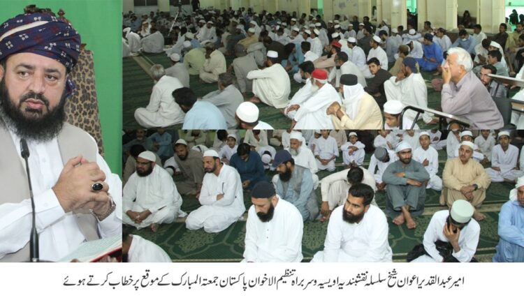 امیر عبدالقدیر اعوان شیخ سلسلہ نقشبندیہ اویسیہ و سربراہ تنظیم الاخوان پاکستان نے جمعتہ المبارک کے موقع پر خطاب کرتے ہوئے کیا